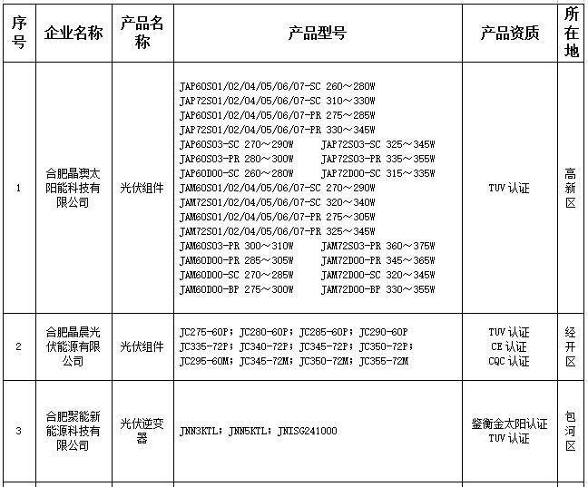 安徽合肥市2017光伏產(chǎn)品推廣目錄(第二批)名單公示 5家企業(yè)入圍(附第一批15家企業(yè)名單)