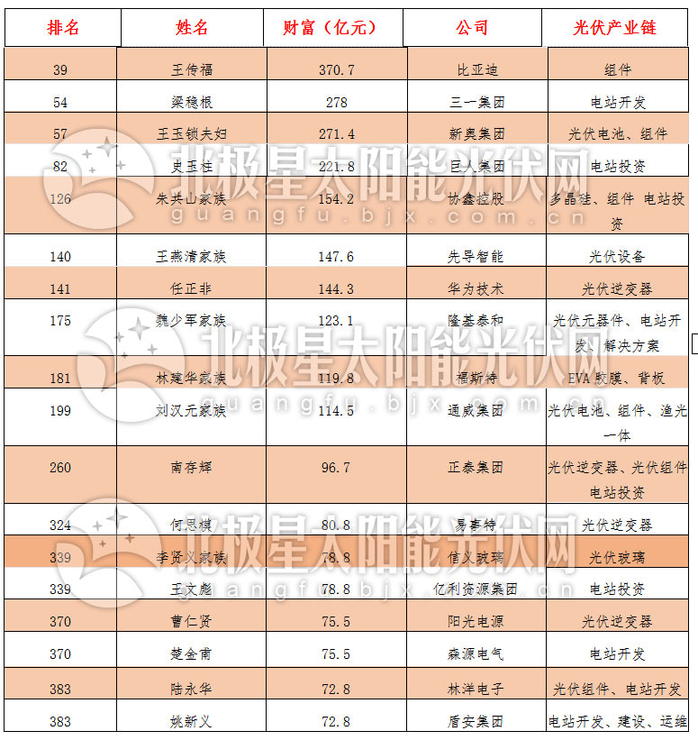 2017福布斯中國(guó)400富豪榜揭曉 光伏領(lǐng)域上榜18人!