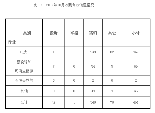 東北能監(jiān)局10月份12398熱線受理處理情況通報