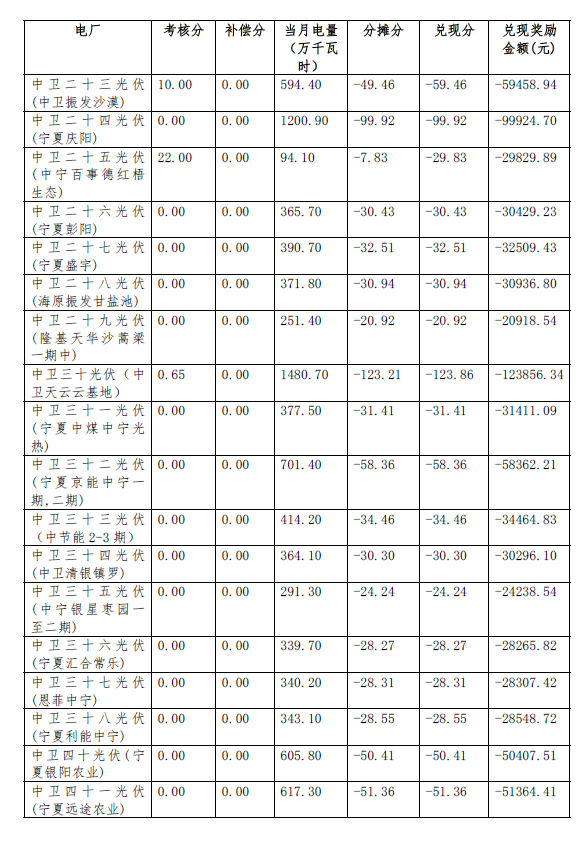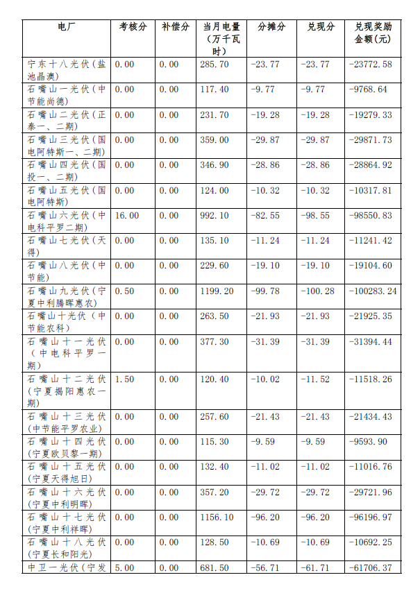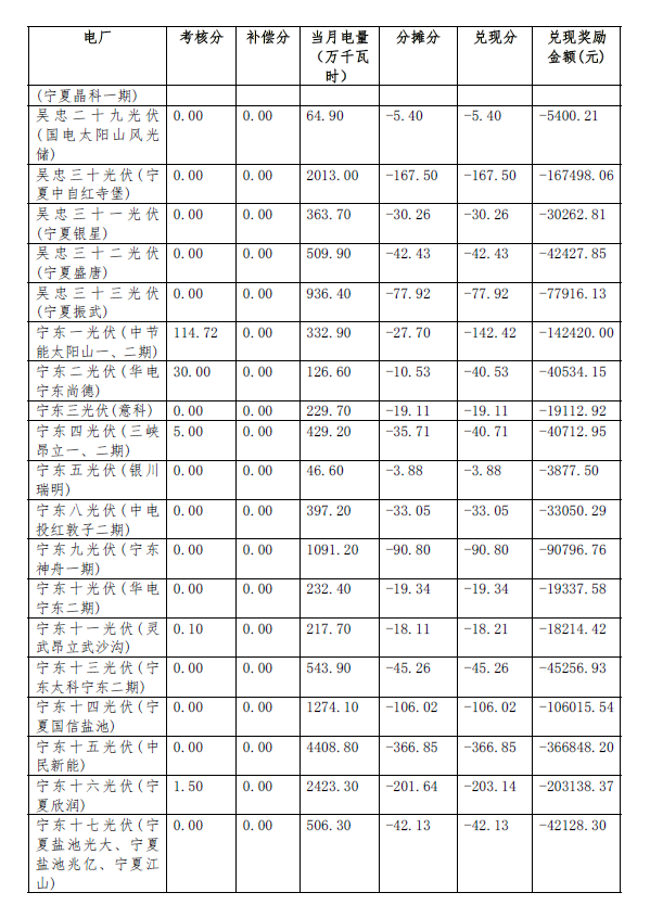根據(jù)《關(guān)于印發(fā)<西北區(qū)域發(fā)電廠并網(wǎng)運(yùn)行管理實(shí)施細(xì)則>及<西北區(qū)域并網(wǎng)發(fā)電廠輔助服務(wù)管理實(shí)施細(xì)則>的通知》(西北監(jiān)能市場〔2015〕28號(hào))規(guī)定,2017年9月份寧夏電網(wǎng)發(fā)電廠并網(wǎng)考核和輔助服務(wù)補(bǔ)償結(jié)果復(fù)核工作已完成,現(xiàn)予公布,請(qǐng)依據(jù)附件結(jié)算。