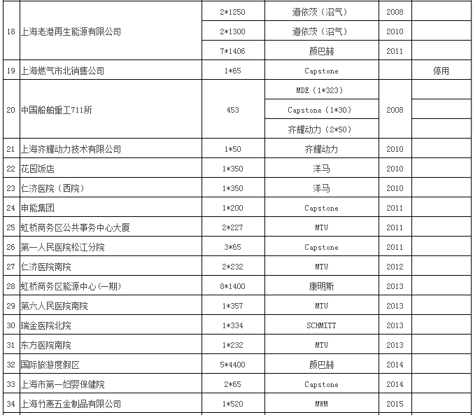 在43個(gè)項(xiàng)目中,因?yàn)樵O(shè)備選型、設(shè)計(jì)、備品備件、運(yùn)行不善等因素造項(xiàng)目停用的項(xiàng)目共9個(gè)共14臺(tái)機(jī)組,總?cè)萘繛?121kW,造成了不小的經(jīng)濟(jì)損失,但也為我國的天然氣分布式能源發(fā)展提高了寶貴的經(jīng)驗(yàn)教訓(xùn)。