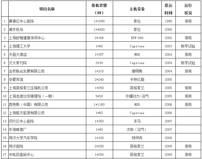 上海市天然氣分布式供能系統(tǒng)的發(fā)展開始于1998年,在上海市經(jīng)濟(jì)委員會(huì)節(jié)能環(huán)保處的支持下,這年上海第一個(gè)分布式供能系統(tǒng)項(xiàng)目黃浦區(qū)中心醫(yī)院天燃?xì)夥植际焦┠芟到y(tǒng)正式投入運(yùn)行。