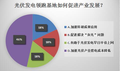 近日,中國(guó)電力新聞網(wǎng)以及中電傳媒微博、微信、論壇發(fā)起關(guān)于“光伏發(fā)電領(lǐng)跑基地如何促進(jìn)產(chǎn)業(yè)發(fā)展?”的話題征集活動(dòng)。調(diào)查結(jié)果如下圖所示。