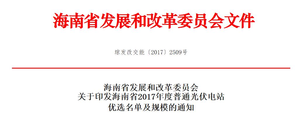 頭條!海南發(fā)改委:關(guān)于印發(fā)海南省2017年度普通光伏電站優(yōu)選名單及規(guī)模的通知