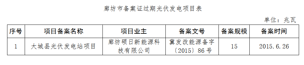 日前河北省發(fā)改委下發(fā)關于廊坊、石家莊市光伏發(fā)電項目備案證有關情況的復函,按照河北省能源局《關于一次性報送光伏發(fā)電項目備案證過期影響土地、環(huán)評、發(fā)電許可等手續(xù)辦理出具意見請示的通知》要求,廊坊市共上