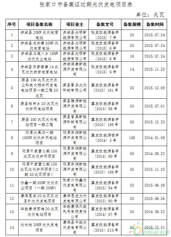 附件張家口市備案證過期光伏發(fā)電項(xiàng)目表
