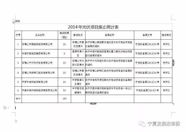 日前,寧夏發(fā)改委發(fā)布公告廢止6個(gè)截止10月底尚未開工的光伏項(xiàng)目,總規(guī)模共計(jì)15.9萬千瓦,上述項(xiàng)目都是于2014年備案的項(xiàng)目。