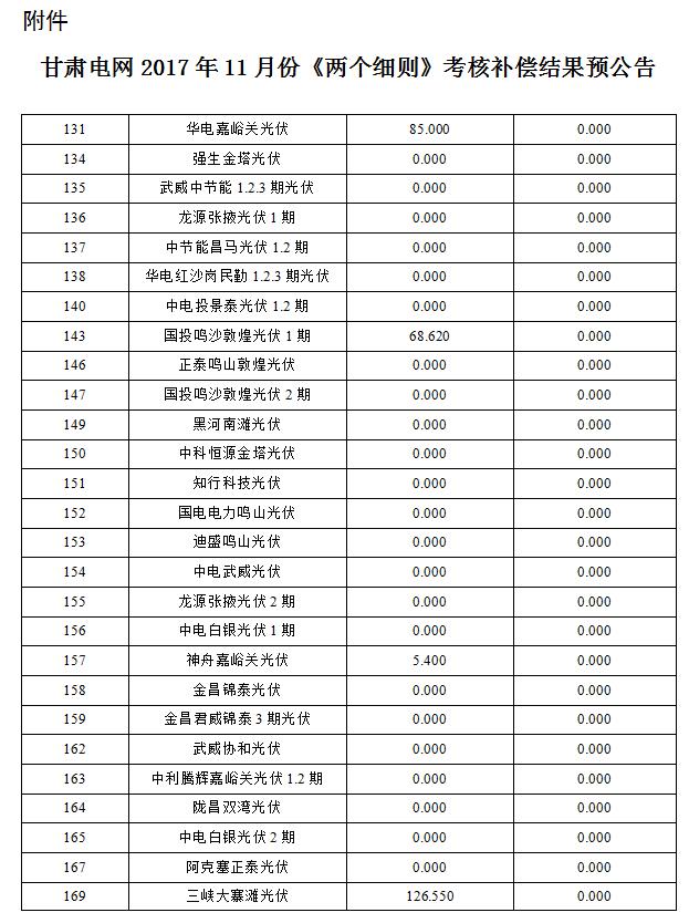附件:甘肅電網(wǎng)2017年11月份“兩個(gè)細(xì)則”考核補(bǔ)償結(jié)果預(yù)公告(光伏)
