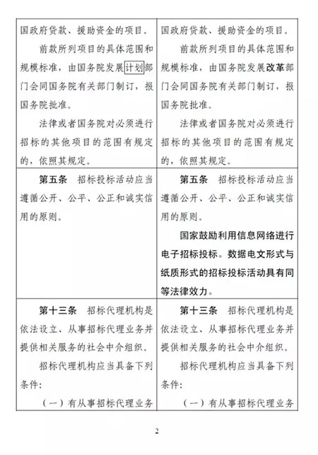 以下是《招投標(biāo)法》和《招投標(biāo)實施條例》修改前后對照表: