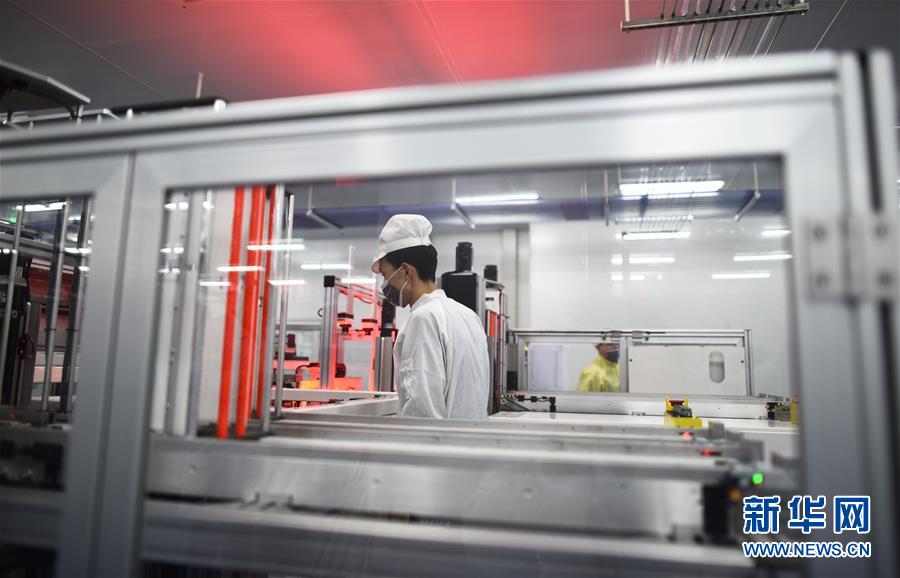 12月28日,在青海西寧,黃河水電太陽能電力公司一名工作人員在單晶PERC電池生產(chǎn)車間內(nèi)作業(yè)。