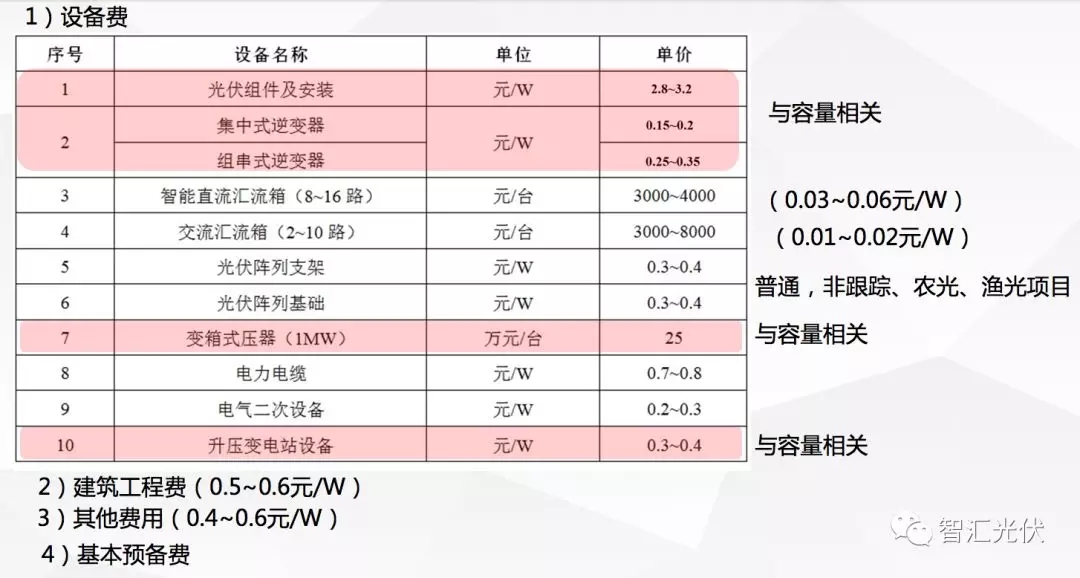 下面表格里列兩部分。標(biāo)紅的部分是與容量相關(guān)的電站造價(jià)。沒有標(biāo)紅的是與功率相關(guān)的面積相關(guān)的電站造價(jià)。
