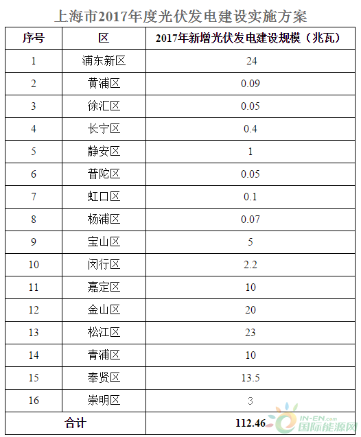 上海16個(gè)區(qū)計(jì)劃新增112.46兆瓦光伏電站(附表)
