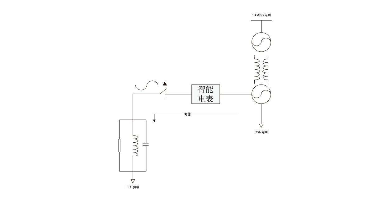 如果工廠直接用電的時(shí)候,負(fù)載直接從電網(wǎng)抽取能量,如下圖:
