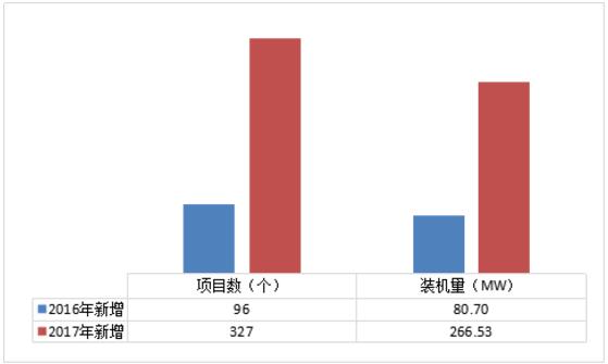 1、總體情況:新增并網(wǎng)項(xiàng)目數(shù)量是2016年的3.4倍