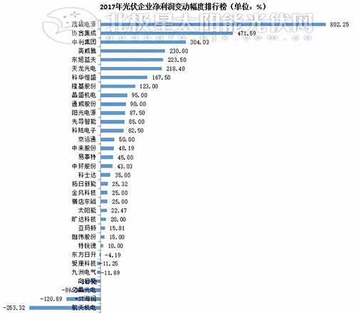 三、光伏企業(yè)2017年度凈利潤增幅排行榜(預告)