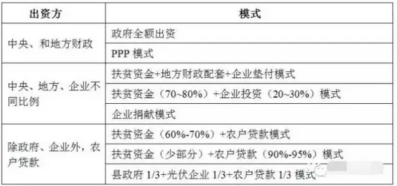 在國(guó)家扶貧辦、國(guó)家能源局的領(lǐng)導(dǎo)下,各地充分結(jié)合本地區(qū)的條件,開展了各種模式的光伏扶貧。在此,以不同的資金結(jié)構(gòu)、運(yùn)作模式進(jìn)行劃分,列舉幾個(gè)比較典型的模式。