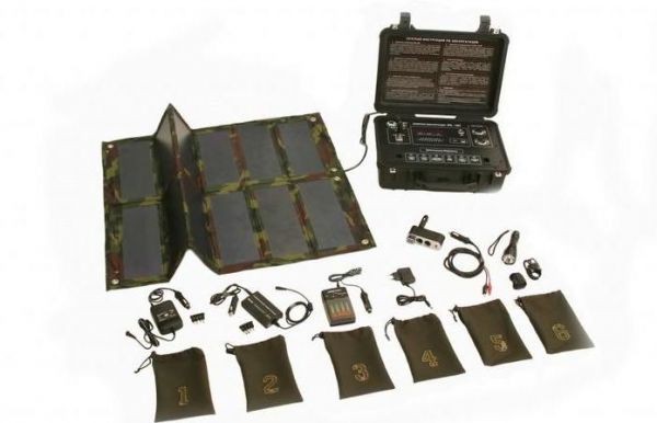 設(shè)計(jì)者了解目標(biāo)受眾的要求,將“太陽能手提箱”的重量縮減為北約相應(yīng)設(shè)備的一半。“太陽能手提箱”的尺寸不大,里面有類似無線電臺的顯示器。箱子右側(cè)有兩個(gè)接頭,可插入5個(gè)接口的充電轉(zhuǎn)接器。這樣可最多同時(shí)給10個(gè)設(shè)備充電。太陽能電池由12個(gè)被防水布包裹的光電管組成。可緊湊地放入彈藥盒中。電池防水且耐撞擊,工作溫度區(qū)間為零下50攝氏度至零上70攝氏度。移動(dòng)電源晴天充滿電需5小時(shí),陰天需8小時(shí)。由于其外形結(jié)構(gòu)便攜,作戰(zhàn)人員可在行軍時(shí)將其放在背包里充電。
