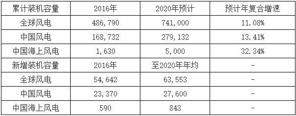 根據(jù)風(fēng)電發(fā)展“十三五”規(guī)劃,到2020年底,海上風(fēng)電并網(wǎng)裝機(jī)容量達(dá)到5GW以上,開工容量超過10GW。截至2016年底,我國海上風(fēng)電累計(jì)裝機(jī)容量僅為1.63GW,預(yù)計(jì)2017年以后海上風(fēng)電將進(jìn)入快速發(fā)展期。2017年上半年我國海上風(fēng)電建設(shè)活動有所提速,項(xiàng)目招標(biāo)需求旺盛,廣東、江蘇、山東等省份積極布局海上風(fēng)電發(fā)展。十三五期間海上風(fēng)電市場有望加速啟動。