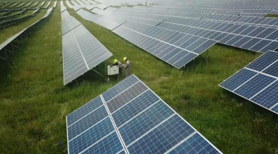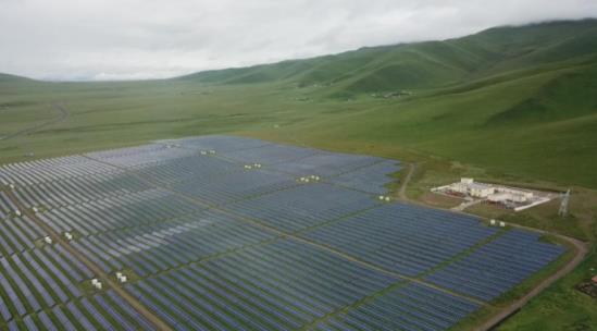 藍天白云下,遼闊的大草原上,大片大片的光伏板,微微昂頭,在高原陽光的照射下,正源源不斷地釋放著綠色能源。