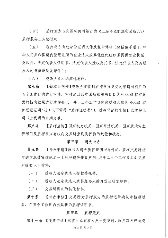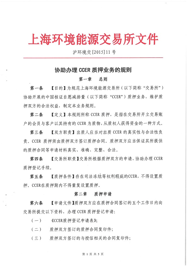 上海環(huán)境能源交易所協(xié)助辦理CCER質(zhì)押業(yè)務(wù)規(guī)則