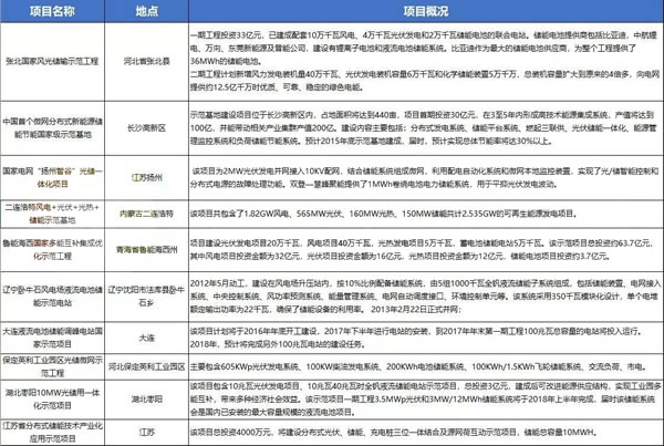 國(guó)內(nèi)儲(chǔ)能示范項(xiàng)目匯總
