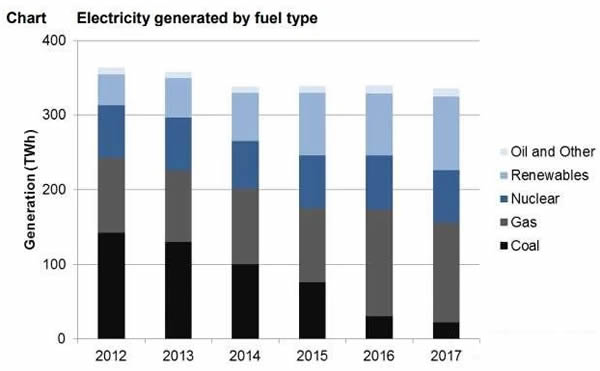 2017年英國發(fā)電結(jié)構(gòu):可再生能源增長19%,低碳電源首超50%