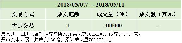 2018年05月11日周CCER成交公告(四川聯(lián)合環(huán)境交易所)