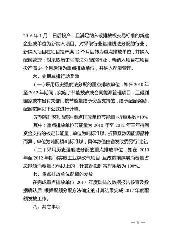 2017年重點(diǎn)排放單位配額實(shí)行免費(fèi)分配,采用基準(zhǔn)線法、歷史強(qiáng)度法相結(jié)合的方法計(jì)算。
