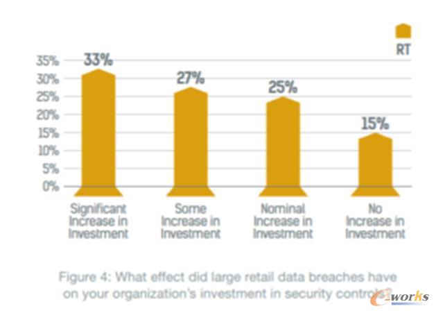 與醫(yī)療和金融服務等其他行業(yè)相比,接受調查的零售商并沒有通過在安全控制方面進行投資的方式對全行業(yè)的安全違規(guī)行為做出回應,其中只有33%的企業(yè)大幅增加了投資。這情況很令人擔憂,原因是60%以上的受訪者正采集客戶數據進行分析和個性化營銷;缺少相關投資可能會讓零售商更容易遭受到威脅和攻擊。