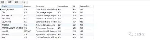命令來查看MySQL使用的引擎,命令的輸出為(我用的Navicat Premium):