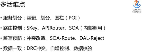 另外 SOA-Route 就是內(nèi)部跨業(yè)務(wù)調(diào)用的訪問路由;還有一個(gè) DAL,就是數(shù)據(jù)庫的代理層。