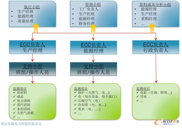 如上圖所示,對(duì)能源管理的責(zé)任應(yīng)該分散到ECC層級(jí),如果一個(gè)部門內(nèi)不止一個(gè)ECC或一個(gè)班組,一線管理人員必須對(duì)他們自己的小部門或班組的能效負(fù)責(zé)。