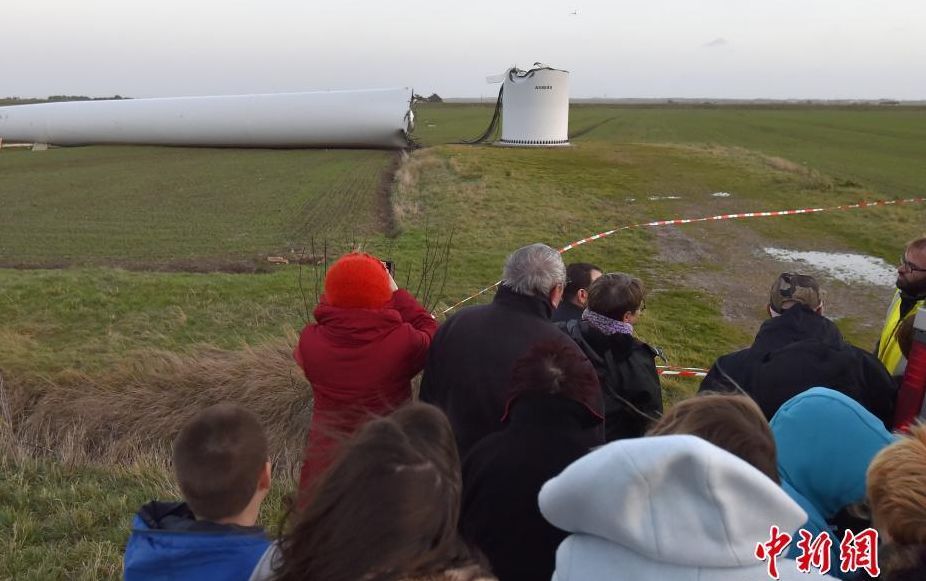 當(dāng)?shù)貢r(shí)間2018年1月1日,法國(guó)布安,受卡門風(fēng)暴影響,當(dāng)?shù)匾蛔L(fēng)力發(fā)電機(jī)被折斷。由于卡門風(fēng)暴肆虐,該國(guó)西部布列塔尼、阿基坦等多個(gè)大區(qū)6 5萬(wàn)戶家庭當(dāng)天下午遭遇停電。據(jù)法國(guó)多家媒體報(bào)道,受災(zāi)最重的布列塔尼大區(qū)