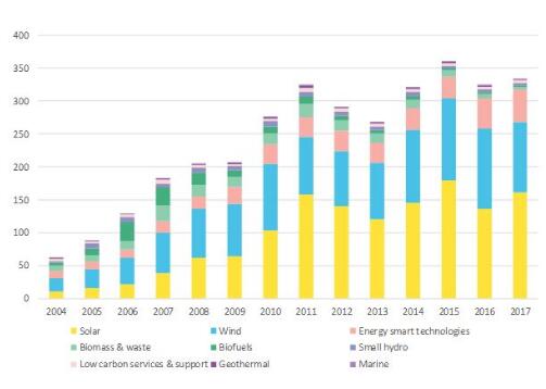 2017年全球清潔能源投資同比增3%至3335億美元 光伏占近一半
