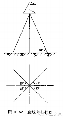 拉線在桿塔上的布置視桿塔型式和它受力情況而定。直線單桿拉線,對(duì)地夾角為60°,對(duì)橫擔(dān)夾角為45°。拉線在正常大風(fēng)情況承受導(dǎo)線風(fēng)壓、桿身風(fēng)壓和導(dǎo)線垂直荷載,在事故斷線情況拉線承受導(dǎo)線的斷線張力。直線雙桿用的V形拉線,不能承受導(dǎo)線、避雷線及桿身的風(fēng)壓荷載,而只能承受事故斷導(dǎo)線時(shí)的斷線張力。因此,能節(jié)約大量鋼材。