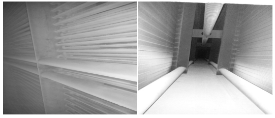 圖5:WGGH凈煙氣再熱器換熱管無腐蝕、積灰及磨損(左圖)及WGGH原煙氣放熱器換熱管無腐蝕、積灰及磨損(右圖)