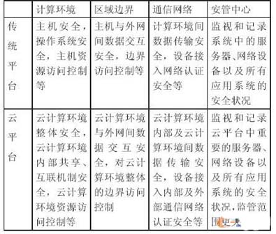表1 給出了傳統(tǒng)平臺與云平臺在各邏輯區(qū)域的主要安全要點對比情況。