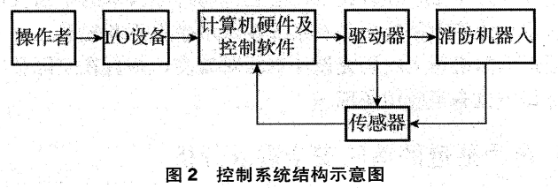 圖2為隧道消防機(jī)器人的控制系統(tǒng)結(jié)構(gòu)示意圖。根據(jù)圖2可以看出,通常情況下,隧道消防機(jī)器人的控制系統(tǒng)設(shè)計(jì)主要包括硬件和軟件兩個(gè)部分。其中,硬件設(shè)計(jì)主要是進(jìn)行控制器的選擇應(yīng)用,根據(jù)控制器類型以及性能特點(diǎn),選擇適用于隧道消防作業(yè)的設(shè)備,以確保其在消防作業(yè)過程中起到較好的控制作用。一般情況下,為確保控制器性能,隧道消防機(jī)器人多以工控機(jī)以及PLC作為控制器核心器件,同時(shí)結(jié)合其他功能需求,選擇相應(yīng)的設(shè)備構(gòu)件。此外,消防機(jī)器人的控制軟件設(shè)計(jì)應(yīng)根據(jù)作業(yè)情況,通過作業(yè)任務(wù)描述以及部件構(gòu)建、多代理情況描述以及端口對(duì)象動(dòng)態(tài)配置、通信等結(jié)構(gòu)功能設(shè)置,并通過分布式結(jié)構(gòu)安排,建立能夠?qū)崿F(xiàn)運(yùn)行管理與控制的系統(tǒng)形式。