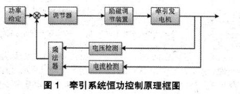 機(jī)車牽引回路的控制主要是主發(fā)電機(jī)勵磁控制。柴油機(jī)轉(zhuǎn)動甜帶動主發(fā)電機(jī)與勵磁發(fā)電機(jī)轉(zhuǎn)動,PLC通過調(diào)節(jié)勵磁發(fā)電機(jī)的輸出來控制主發(fā)電機(jī)的輸出,機(jī)車牽引工況時,在不同柴油機(jī)轉(zhuǎn)速下實(shí)現(xiàn)柴油機(jī)的恒功率勵磁控制;機(jī)車電阻制動工況時,實(shí)現(xiàn)機(jī)車制動功率和制動電流的控制。