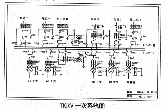 某自備電廠110kV系統(tǒng)設(shè)有兩段母線,所帶設(shè)備主要有4臺主變( 110/10kV)、1臺高備變(110/6kV)及6條110kV線路,其中711、712線路連接至電網(wǎng),另外4條為公司內(nèi)部供電(一次圖如下)。原配備的母差保護(hù)為2002年投運(yùn)的WM2-41型微機(jī)母差保護(hù),經(jīng)過十多年的運(yùn)行,保護(hù)裝置存在裝置液晶顯示模糊、電源插件故障頻繁、備品備件原廠家已停產(chǎn)無法購買等問題,嚴(yán)重影響公司110kV系統(tǒng)的安全穩(wěn)定運(yùn)行。本次改造將WM2-41型微機(jī)母差保護(hù)升級為SGB750數(shù)字式母線保護(hù),同屏安裝,同時取消母聯(lián)帶旁路出線功能,取消信號回路,將保護(hù)裝置接入綜合白動化后臺,整個改造工期4天。