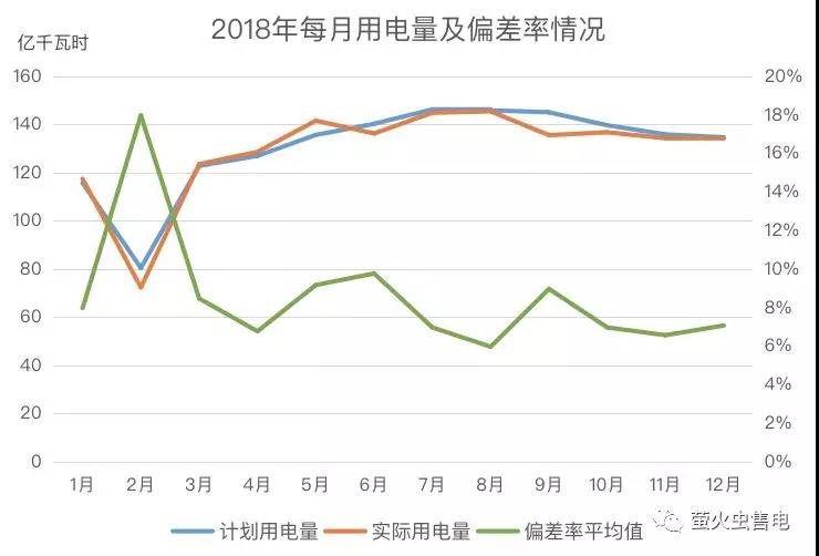 2018年全市場計(jì)劃用電量為1572億千瓦時(shí),實(shí)際用電量為1554億千瓦時(shí)。需求側(cè)用電偏差率平均值為8.58%。
