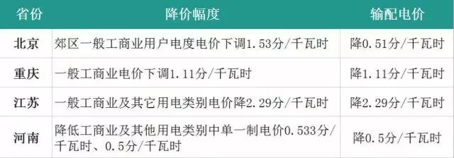 自2018年4月1日起,工商業(yè)及其他用電類別中單一制電價水平由原一般工商業(yè)及其他電價水平降低0.533分/千瓦時;輸配電價中單一制電價水平由原一般工商業(yè)及其他輸配電價水平降低0.5分/千瓦時。