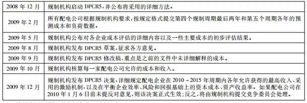 表2 英國(guó)第5個(gè)配電價(jià)格控制周期(2010~2015年,DPCR5)過(guò)程