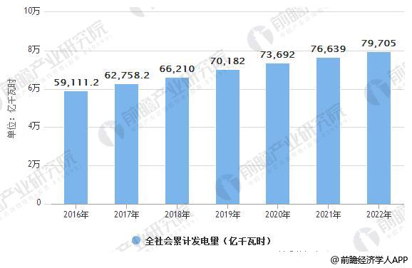 2016-2022年全社會累計發(fā)電量統(tǒng)計情況及預測