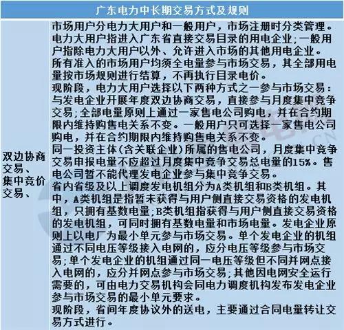 在我國的電力市場中,將日以上的交易稱為中長期交易,將日前及日以內(nèi)的交易稱為現(xiàn)貨交易。除云南擁有日前市場以外,現(xiàn)行的都是電力中長期交易,廣東目前的交易方式及規(guī)則如下: