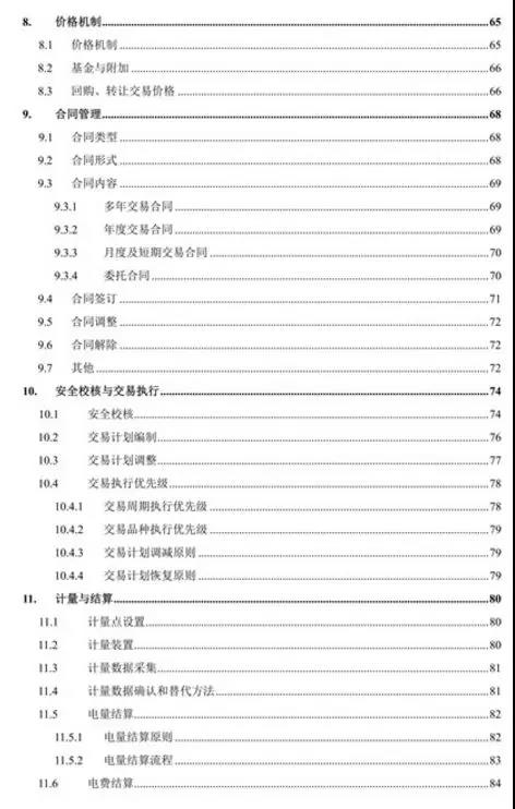 《實施細(xì)則》是目前最全面、最細(xì)致的市場交易規(guī)則,具有較強(qiáng)的操作性,光目錄就有足足4頁,全面規(guī)范了交易品種、組織方式和工作流程,對促進(jìn)清潔能源消納的省間外送交易、發(fā)電權(quán)交易等品種進(jìn)行了規(guī)定。
