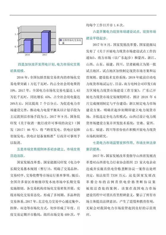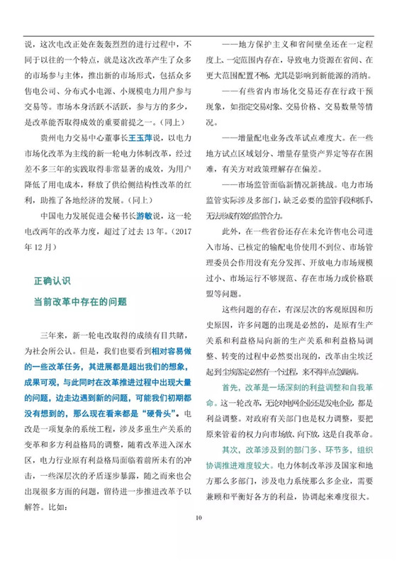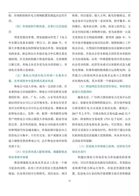 三年來,新一輪電力體制改革堅持新發(fā)展理念,堅持社會主義市場經(jīng)濟(jì)方向,按照管住中間、放開兩頭的要求,以大力推動市場化交易為中心,有序放開競爭性業(yè)務(wù)和競爭性環(huán)節(jié)電價,加強(qiáng)政府對自然壟斷環(huán)節(jié)的監(jiān)管,優(yōu)化電力資源配置,還原電力商品屬性,拓寬社會投資渠道,改善供電服務(wù)質(zhì)量,形成主要由市場決定電價的機(jī)制。當(dāng)前,中國特色社會主義進(jìn)入新時代,電力體制改革也要有新氣象、新作為。站在新的歷史起點(diǎn),對改革進(jìn)展、改革成效和存在問題進(jìn)行階段性總結(jié),并對下一步推進(jìn)電力改革提出政策建議,很有必要。