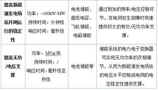 表1 儲(chǔ)能與可再生發(fā)電配合的典型應(yīng)用和要求