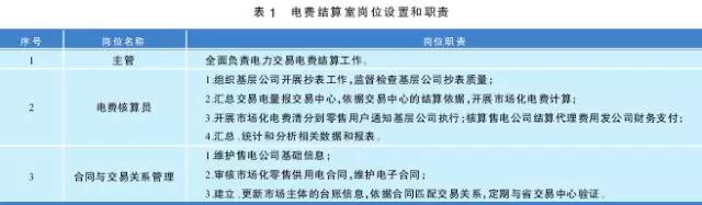 組織架構(gòu)變革。省公司層增設(shè)電費(fèi)結(jié)算室,電費(fèi)結(jié)算室崗位設(shè)置和職責(zé)如下表: