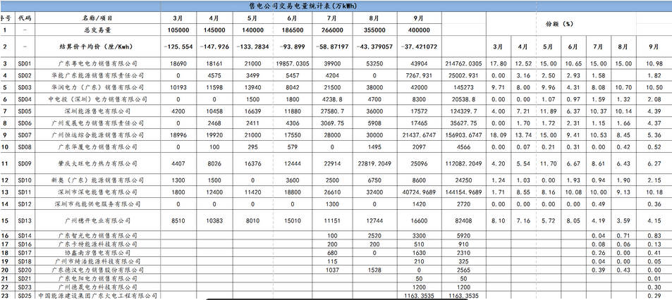 廣東今日(21日)完成本年度最后一次月度競價交易,成交電量達到40億千瓦時,平均結(jié)算價差-37厘 千瓦時。我們了解到,四季度,廣東月度競價將暫停,等待新規(guī)出臺,預(yù)計新規(guī)將采用邊際統(tǒng)一出清。在此,我們對開創(chuàng)歷